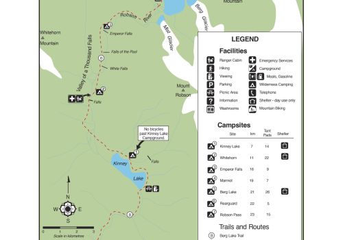 - The final leg of the hike takes you back through the Valley of a Thousand Falls, past Kinney Lake, and eventually to the trailhead at the Mount Robson Visitor Centre.