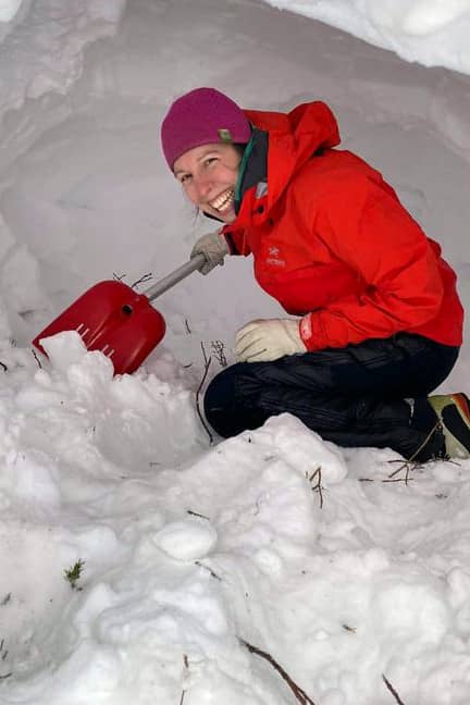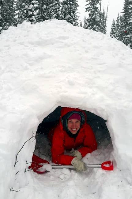 QuinzheeIf you don’t have a deep enough snowbank for a cave, you can make one! Pile up snow, while regularly tramping down the snow with your snowshoes. Once you have a good size snowpile, let it sit for at least 2 hours for the snow to settle. Then dig it out in the same manner as the snow cave.