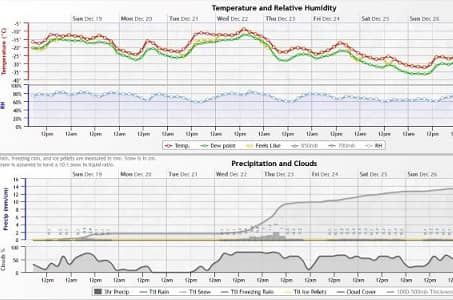 SpotWxGood detail on different criteria like temperature, wind, and precipitation presented on graphs.
