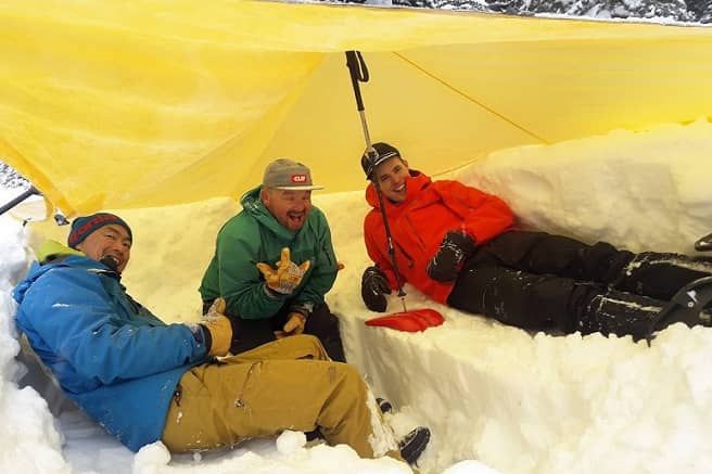 If a person is injured to the point where they can’t walk out themselves, it’s usually not practical to carry them more than a hundred meters. We learned how to build a transport toboggan out of a tarp to move a person a short distance to a sheltered area or to meet up with rescue personnel.