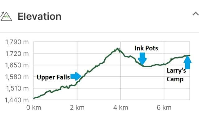 Upper Falls To Larry’s Camp: +2.2 km one way (14.4km total round trip)